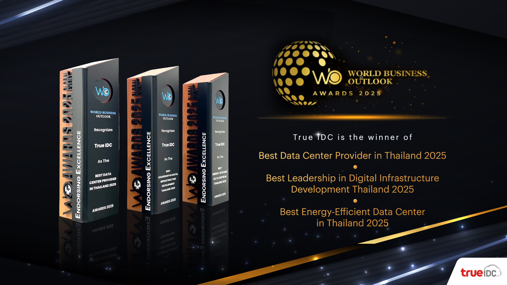 True IDC ผู้ให้บริการดาต้าเซ็นเตอร์ระดับ AI Hyperscale และบริการระบบคลาวด์จากแบรนด์ระดับโลก นำโดยคุณฐนสรณ์ ใจดี ประธานเจ้าหน้าที่บริหาร คว้า 3 รางวัลจากเวที World Business Outlook Awards 2025 ได้แก่ ผู้ให้บริการดาต้าเซ็นเตอร์ยอดเยี่ยมแห่งปี (Best Data Center Provider in Thailand 2025) ผู้นำด้านการพัฒนาโครงสร้างพื้นฐานดิจิทัลของประเทศไทย (Best Leadership in Digital Infrastructure Development Thailand 2025) และดาต้าเซ็นเตอร์ที่มีนวัตกรรมด้านพลังงานยอดเยี่ยม (Best Energy-Efficient Data Center in Thailand 2025) โดยความสำเร็จของ ทรู ไอดีซีในครั้งนี้สะท้อนถึงความเป็นเลิศในการออกแบบและดำเนินงานภายใต้มาตรฐานสากลและเทคโนโลยีล้ำสมัย การขยายพื้นที่การให้บริการอย่างต่อเนื่อง และการส่งมอบบริการที่มีคุณภาพและความรวดเร็วให้กับองค์กรชั้นนำทั้งไทยและต่างประเทศเพื่อขานรับการใช้งานของคลาวด์และเอไอที่กำลังเพิ่มสูงขึ้นเป็นอย่างมาก