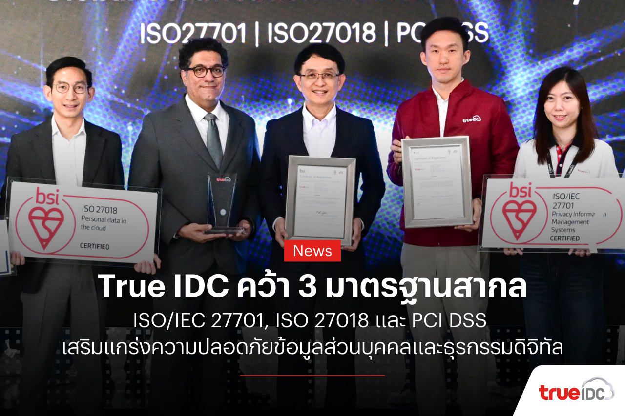 True IDC ยกระดับความเชื่อมั่น คว้า 3 มาตรฐานสากล ISO 27701, ISO 27018 และ PCI DSS เสริมแกร่งความปลอดภัยความปลอดภัยข้อมูลส่วนบุคคลและธุรกรรมดิจิทัล